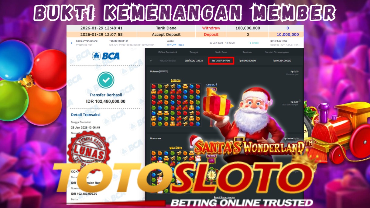 Halaman bukti kemenangan TOTOSLOTO menampilkan hasil kemenangan nyata dari member aktif yang bermain slot dan togel online setiap hari. Seluruh data ditampilkan secara transparan dan diperbarui secara berkala.